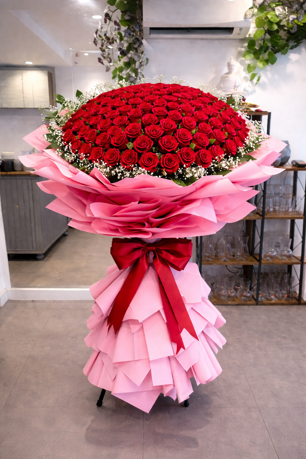101 Promises of Love is the ultimate expression of the heart — a breathtaking sea of red roses designed to celebrate deep emotions, timeless romance, and a love that lasts forever.