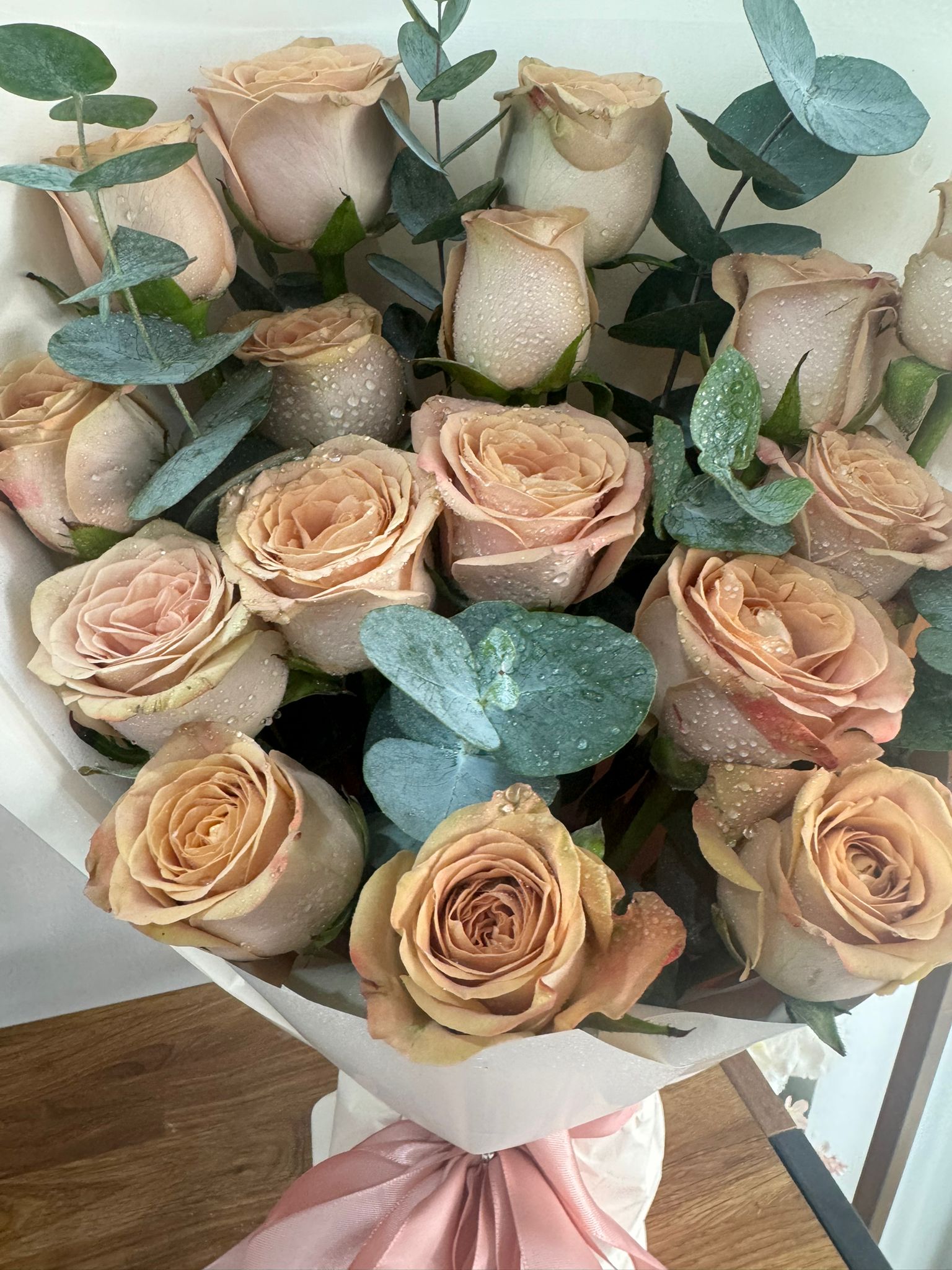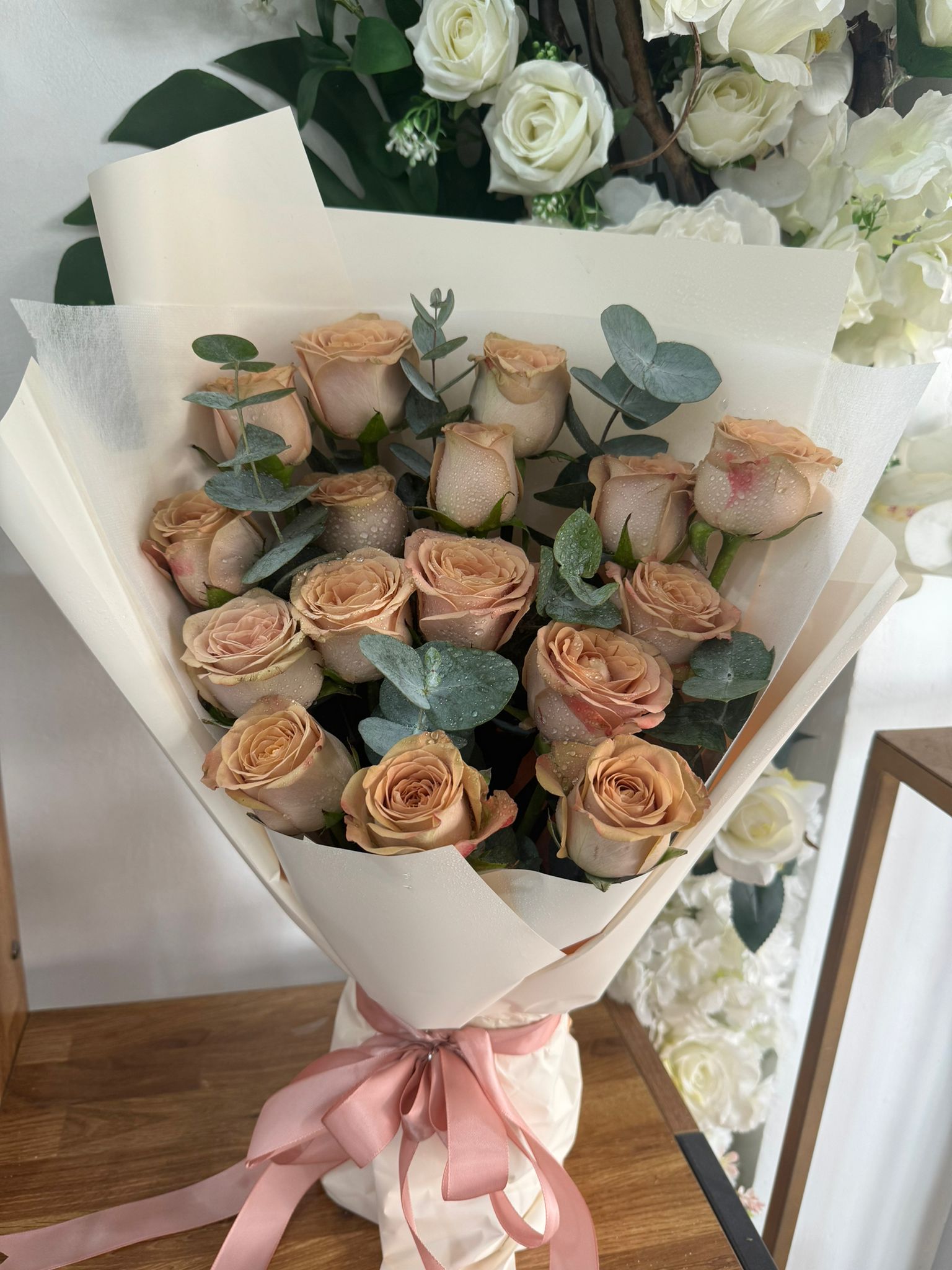 Our Bloom Cappuccino Roses feature elegant, soft-toned petals in a warm blend of coffee and cream colors. With their unique, these roses add a touch of luxury and charm to any bouquet. Perfect for creating a stunning, understated arrangement for special occasions or to elevate everyday decor.