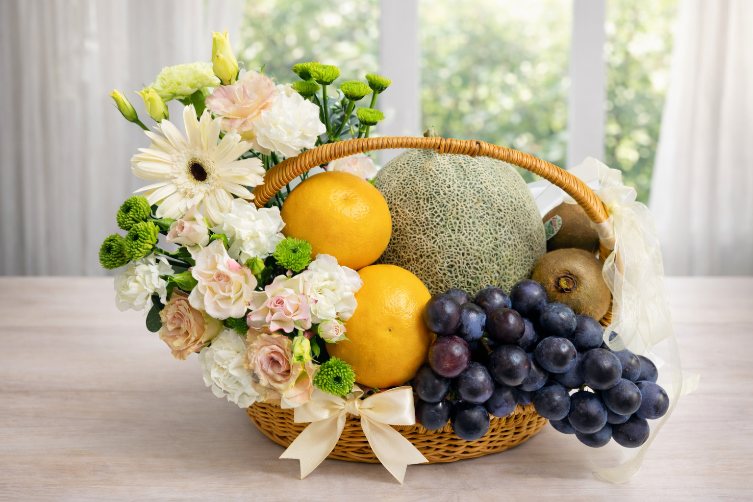 .Ideal for both personal and professional occasions, this basket offers a tasteful blend of nature’s sweetness and floral grace, presented in a clean, modern aesthetic.