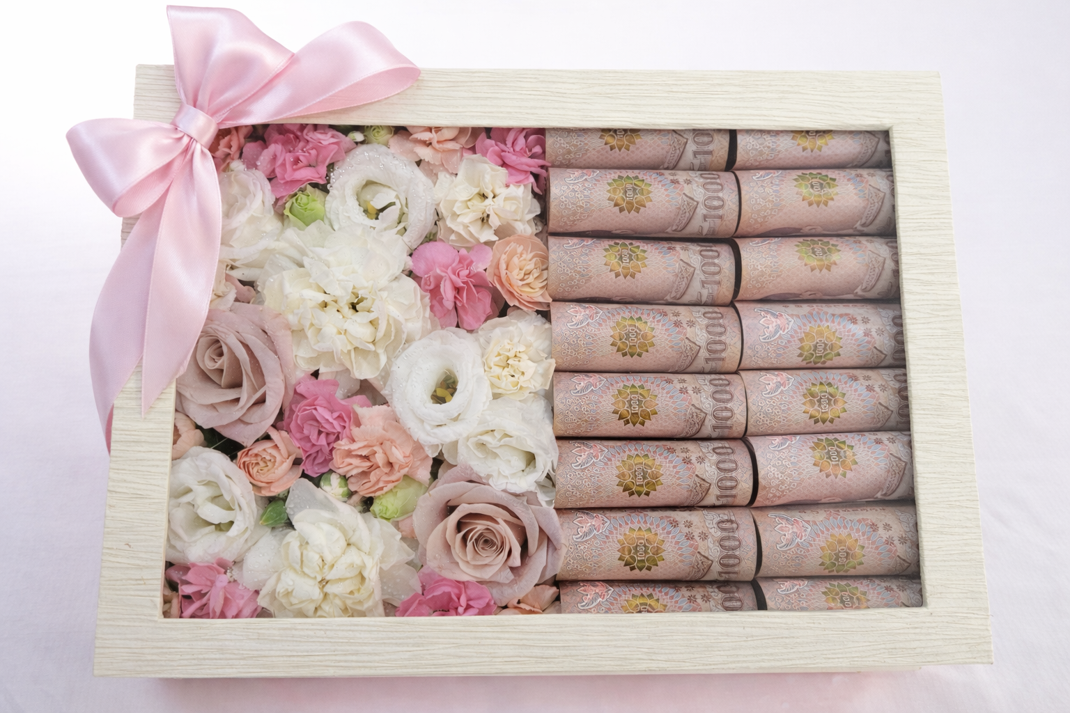 • Fresh flowers meet financial blessings — a gift that says love and prosperity.”