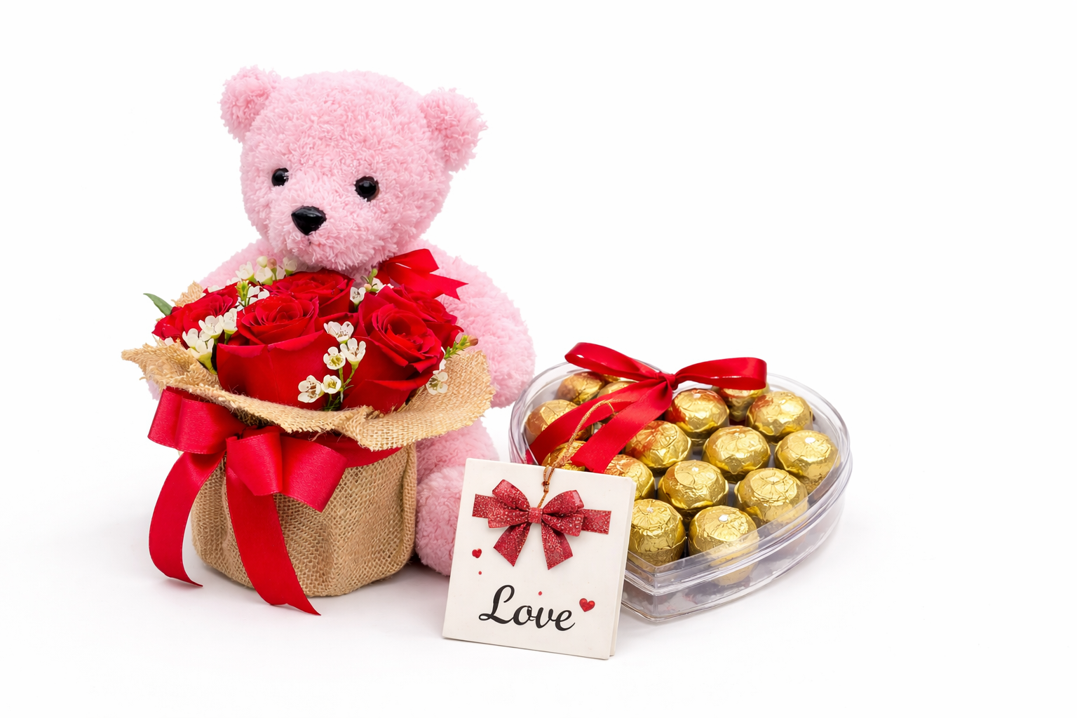 Wrapped in softness and love, this adorable pink teddy and Roses is made to melt hearts. A timeless Teddy Day gift that turns every hug into a memory they’ll cherish.