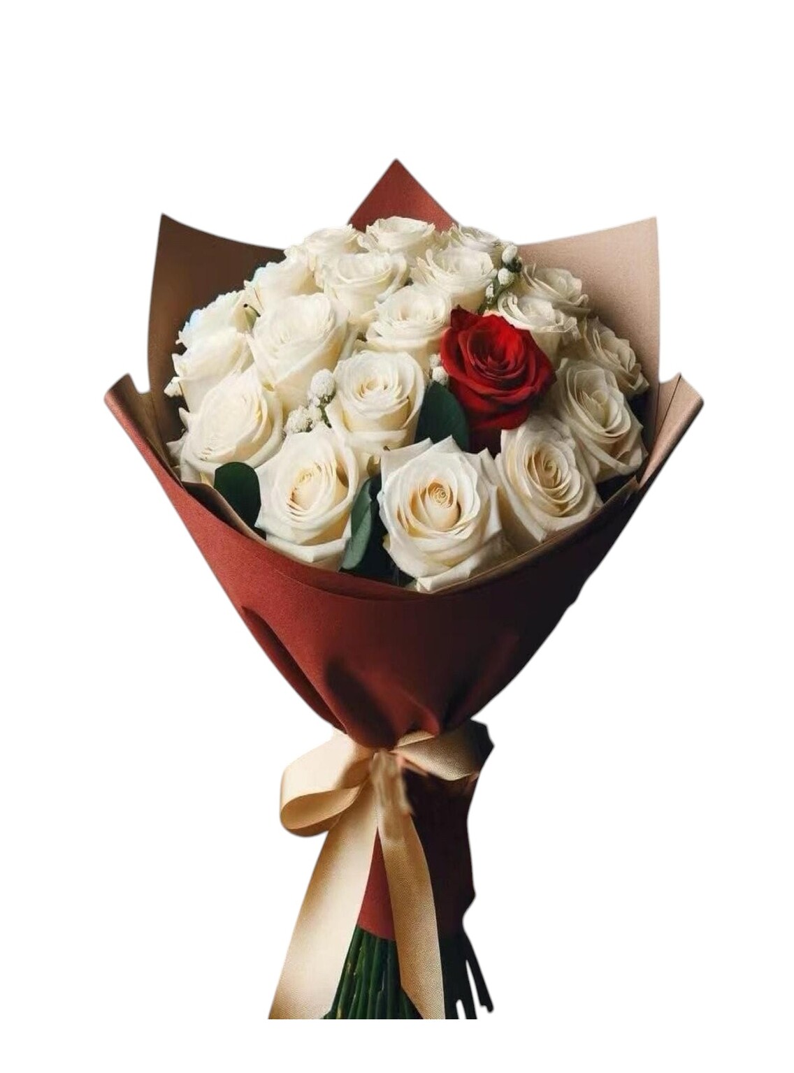 Tint of Red in a bunch of whute Roses