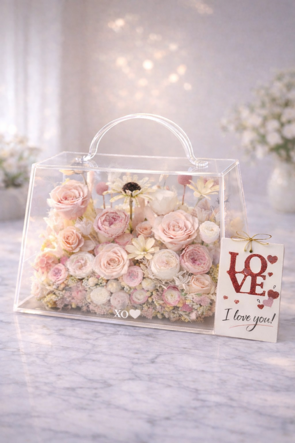 This luxury preserved floral arrangement symbolizes a promise that never fades. Paired with a single elegant card, it’s the perfect way to say “I’m here, always.”