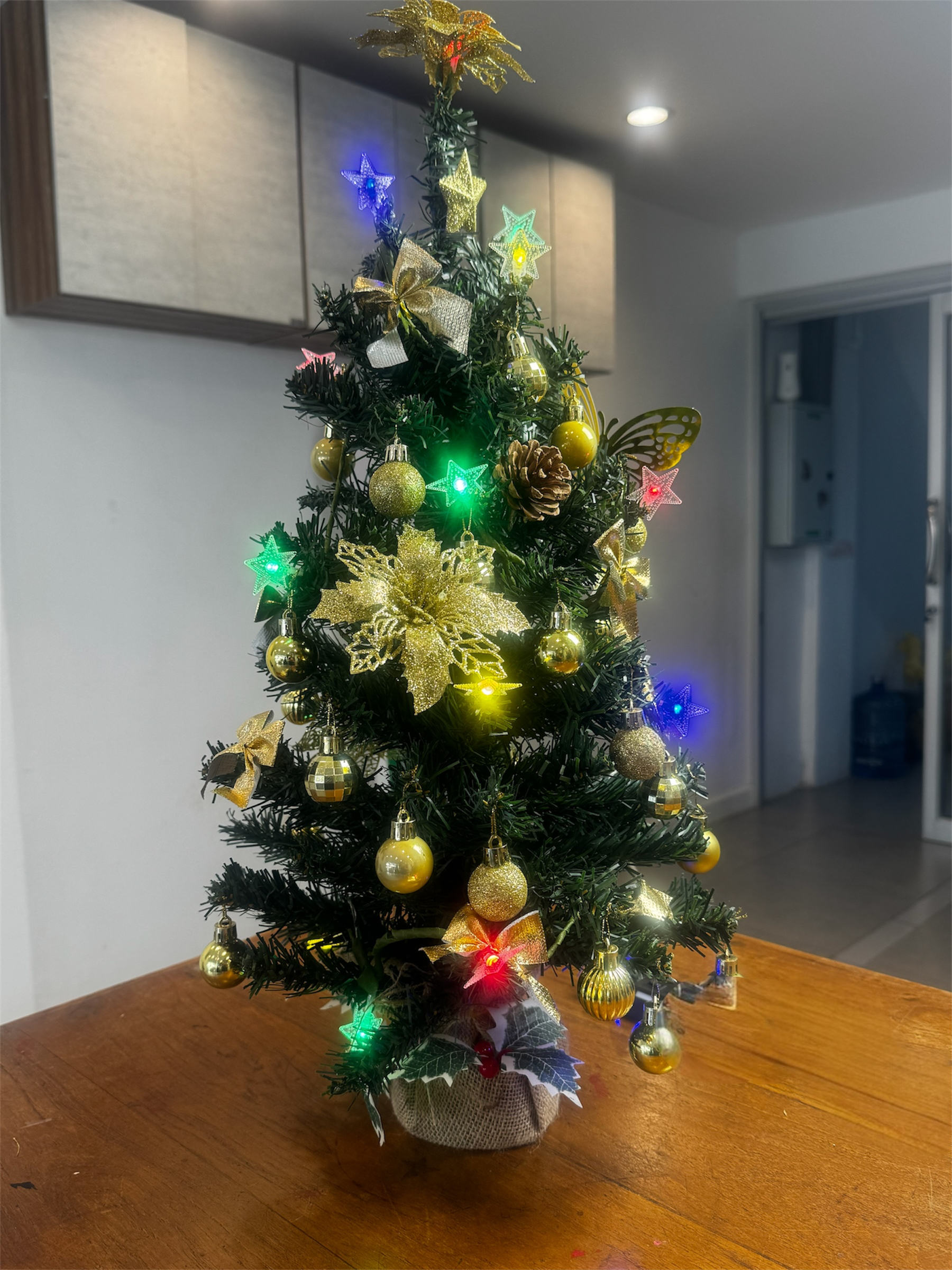 A radiant tree, glowing with gold and Christmas magic. 60 cms long